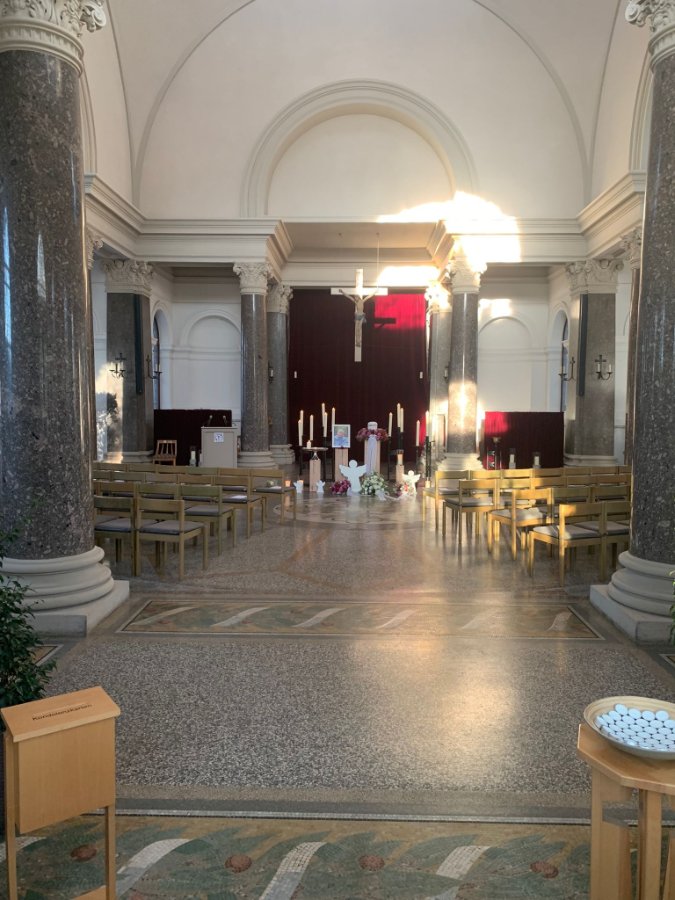 Urnenabschiedsfeier, Hauptfriedhof Freiburg Einsegnungshalle